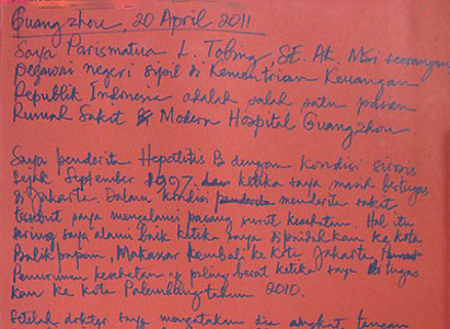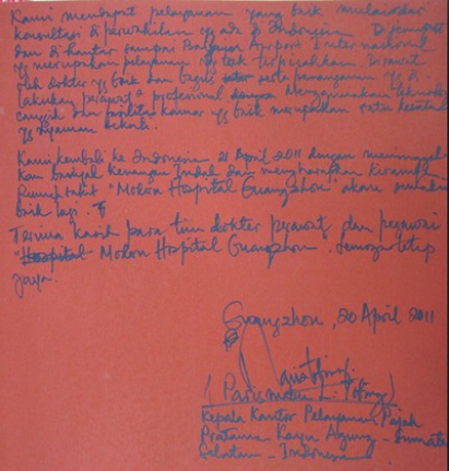 我是印尼財(cái)政部的公務(wù)員,從1997年得了肝硬化,我去過多個(gè)城市治療,后印尼醫(yī)生也沒辦法,建議我去中國治療。