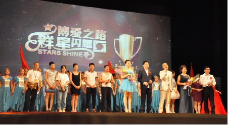 博愛(中國)企業(yè)集團(tuán)董事局主席林志程(前排右四)攜手表演嘉賓演繹《月亮代表我的心》