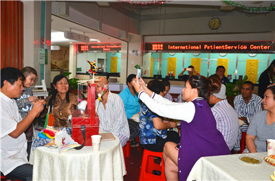第一場活動(dòng)當(dāng)晚,到場的泰國患者和家屬接近30人。為了調(diào)動(dòng)現(xiàn)場氣氛,活動(dòng)邀請了登峰街義工為患者帶來了中國傳統(tǒng)的樂器——木琴和葫蘆絲演奏,還專門邀請了專業(yè)的泥塑師傅,為患者捏造一個(gè)又一個(gè)栩栩如生的泥塑公仔,讓患者及家屬一睹中國傳統(tǒng)的民間藝術(shù)風(fēng)采。