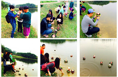 期間,一位泰籍阿姨還專(zhuān)門(mén)跟我們科普了一下關(guān)于“水燈節(jié)”的知識(shí)。為什么要放河燈呢?泰國(guó)朋友告訴我們,放河燈有幾層意思:一為泰國(guó)以前常常鬧水災(zāi),放河燈是祈福未來(lái)的一年風(fēng)調(diào)雨順,不再有水災(zāi);二為泰國(guó)祈福,祈福國(guó)家更加繁榮昌盛;三為自己和家人祈福,希望自家人朋友在來(lái)年都能健康、平安。在泰國(guó)人的眼中,隨著河燈的漂流,過(guò)去的不幸都會(huì)離自己遠(yuǎn)去;承載著希望的河燈,也會(huì)將他們對(duì)遠(yuǎn)方朋友的祝福送達(dá)。