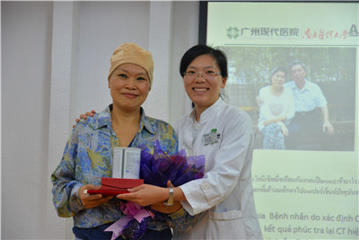 同樣在我院獲得好的效果的還有來自越南的黃國華,他于2012年因肺癌來到我院,經(jīng)過綜合治療后,現(xiàn)在病情穩(wěn)定只需每隔半年返院復(fù)查。“感謝廣州現(xiàn)代醫(yī)院全體醫(yī)護(hù)人員給了我重生的機(jī)會(huì),希望大家都要有信心。”這是黃國華發(fā)自心底的感言。