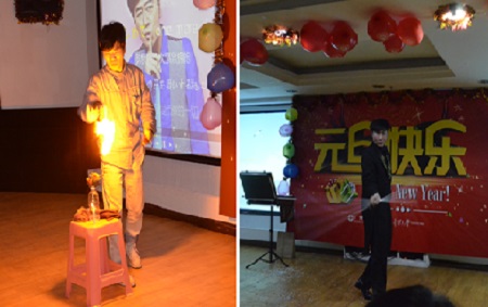 晚會(huì)以一曲《恭喜發(fā)財(cái)》拉開帷幕,喜慶的音樂,漫天灑落的紅包點(diǎn)燃了觀眾激情,隨后兩大魔術(shù)高手同臺(tái)競技,為現(xiàn)場觀眾分別制造出一場北國風(fēng)光和江南風(fēng)情,在場觀眾嘖嘖稱奇。之后廣東工業(yè)大學(xué)學(xué)生、登峰街義工組等相繼上場,為大家表演了手語舞蹈,吉他、口琴吹奏等節(jié)目。其中來自廣東工業(yè)大學(xué)的外籍學(xué)生“面條”先生為大家表演《Original dance》,又唱又跳還不斷與觀眾互動(dòng),挑起了全場熱情,大家都忍不住跟著他唱了起來、扭動(dòng)起來。晚會(huì)節(jié)目精彩紛呈,驚喜不斷,讓觀眾流連忘返,在主持人宣布節(jié)目結(jié)束時(shí)還久久不愿離去。