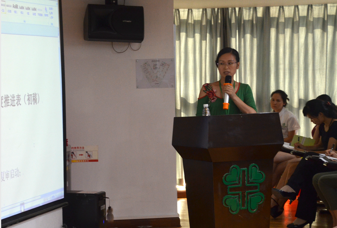 下午2點30分,動員大會正式開始,首先,質管科熊玉梅主任講解《廣州現(xiàn)代醫(yī)院迎接JCI復審工作計劃》,涵蓋醫(yī)療、護理、感控、環(huán)境安全等各個方面。為了能有效保障計劃的順利進行,熊玉梅主任推出三點重要舉措,分別是: 落實JCI相關章節(jié)負責人及其成員,組建JCI知識讀書會,系統(tǒng)開展全院員工管理工具培訓。