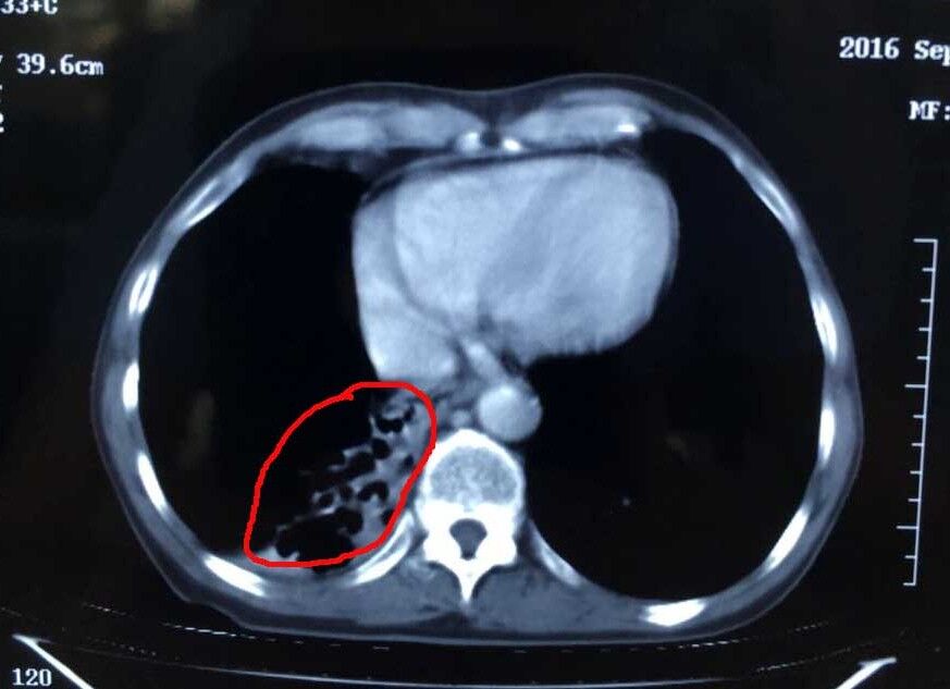 命途無常,無驚無險經(jīng)歷了大半輩子,楊清貴夫婦正忙著頤養(yǎng)天年,生活卻被種下了一顆巨大“炸彈”。2015年,楊清貴持續(xù)出現(xiàn)咳嗽、咳痰、呼吸困難10個月,吃藥也不見效果。后經(jīng)檢查發(fā)現(xiàn),楊清貴的右肺有一個約10*6cm大小的腫塊,確診為肺癌。楊清貴十分害怕,擔心自己能否好起來。“在印尼,癌癥是很可怕的,人們都覺得它是絕癥。”張英友解釋道。醫(yī)生建議楊清貴手術治療。楊清貴怕痛,拒絕了。一個星期后,楊清貴的兒媳從網(wǎng)上了解到圣丹福·廣州現(xiàn)代(腫瘤)醫(yī)院,她建議楊清貴:“爸,你到中國去吧,那里的廣州現(xiàn)代(腫瘤)醫(yī)院不用開刀。”到雅加達辦事處預約好入院時間,一周后,楊清貴來到了圣丹福·廣州現(xiàn)代(腫瘤)醫(yī)院。